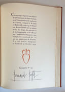 Paris, Les Bibliophiles de France, 1994. In-folio, en feuilles, couverture rempliée, boîte-étui de l’éditeur.Zao Wou-ki, the graphic work, pl. 366 à 372. Édition originale de la traduction d’Yves Bonnefoy des 24 premiers sonnets de Shakespeare.Elle est illustrée de 7 eaux-fortes originales à pleine page de Zao Wou-Ki.Constituant le 27e ouvrage édité par les Bibliophiles de France, elle fut tirée à 195 exemplaires sur papier vélin, signés par l’auteur et l’artiste.Rare exemplaire de chapelle ; non numéroté et ne portant pas la signature de l'auteur et de l'artiste, il était sans doute destiné à l'imprimeur ou l'atelier typographique.Il est enrichi d'une des 30 suites sur chine contrecollé, numérotée 29/30 et signée par Zao Wou-Ki sur chaque gravure ; ces suites étaient réservées aux membres de la Société.Il comprend également le menu, imprimé pour l'assemblée générale des membres, illustré d'une des eaux-fortes de l'ouvrage. Très bel exemplaire.