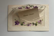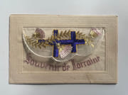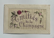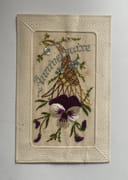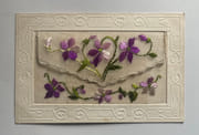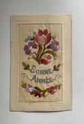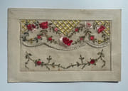 Un fin voile est brodé de fleurs, animaux, messages ; s'ouvrant parfois en deux panneaux, comme une enveloppe, il est collé sous un cadre de papier gaufré au verso d'une carte postale. Charmant !Au choix, 20 euros chacune.