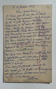 Poème manuscrit de 5 feuillets in-12, manuscrits recto-verso, début XXe s. ; intitulé "aide mémoire en vers", c'est un encouragement pour les artistes débutants.Charmant dessin à l'encre sur la chemise.